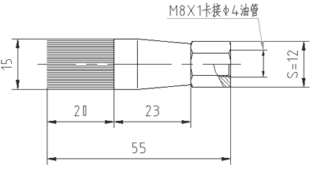 進油口螺紋M8X1,卡套式聯(lián)接φ4外徑的油管。