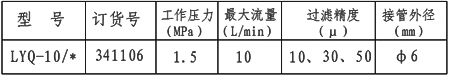 “LYQ-10/*”型濾油器用來過濾潤滑油中的雜質(zhì)。安裝在潤滑系統(tǒng)的主管路上,即油泵輸出的潤滑油經(jīng)本過濾器過濾后再到分配器組。 “LYQ-10/*”型過濾器:過濾面積大(0.5平方米),容污能力強(一次濾芯堵塞可帶出臟物大于100克)。其過濾精度有:10μ、30μ、50μ等。特別適用于循環(huán)型集中潤滑系統(tǒng)。